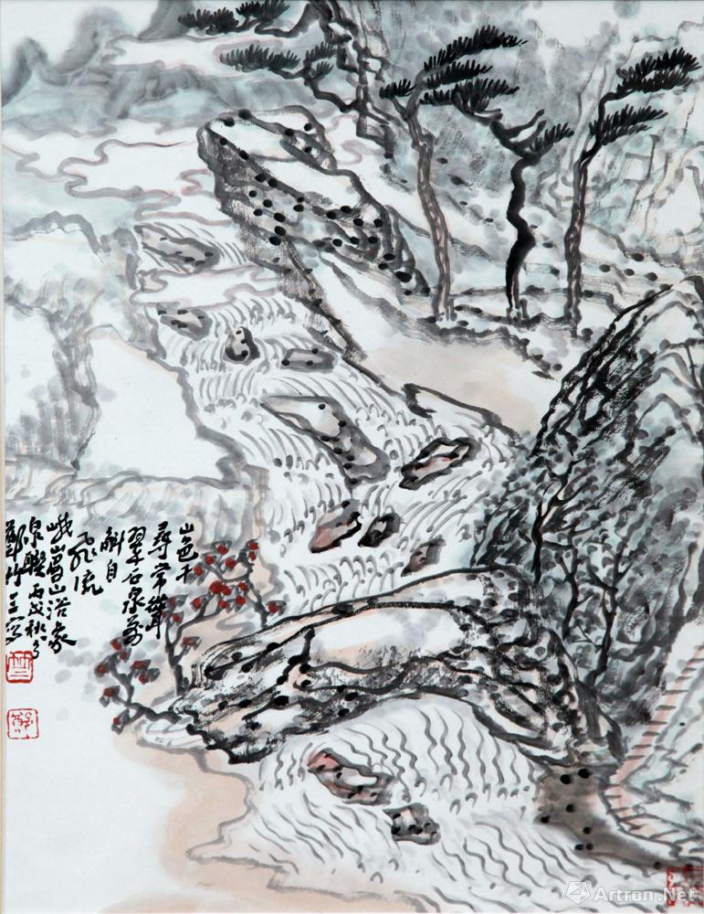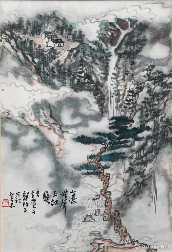 山瀑无声玉虹悬
