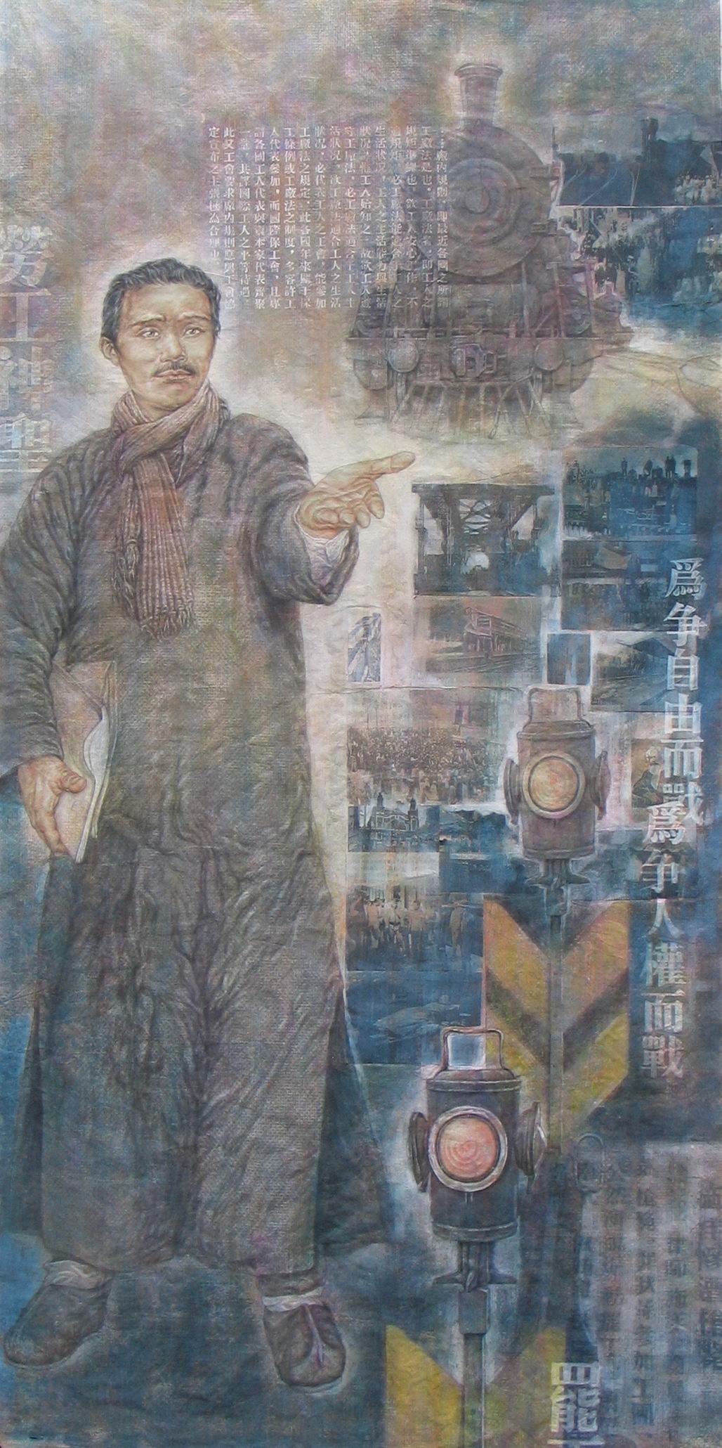 二七大罢工 纸本彩墨 200cmX194cm2005年选自记念中国工农红军长征胜利70周年全国中国画展