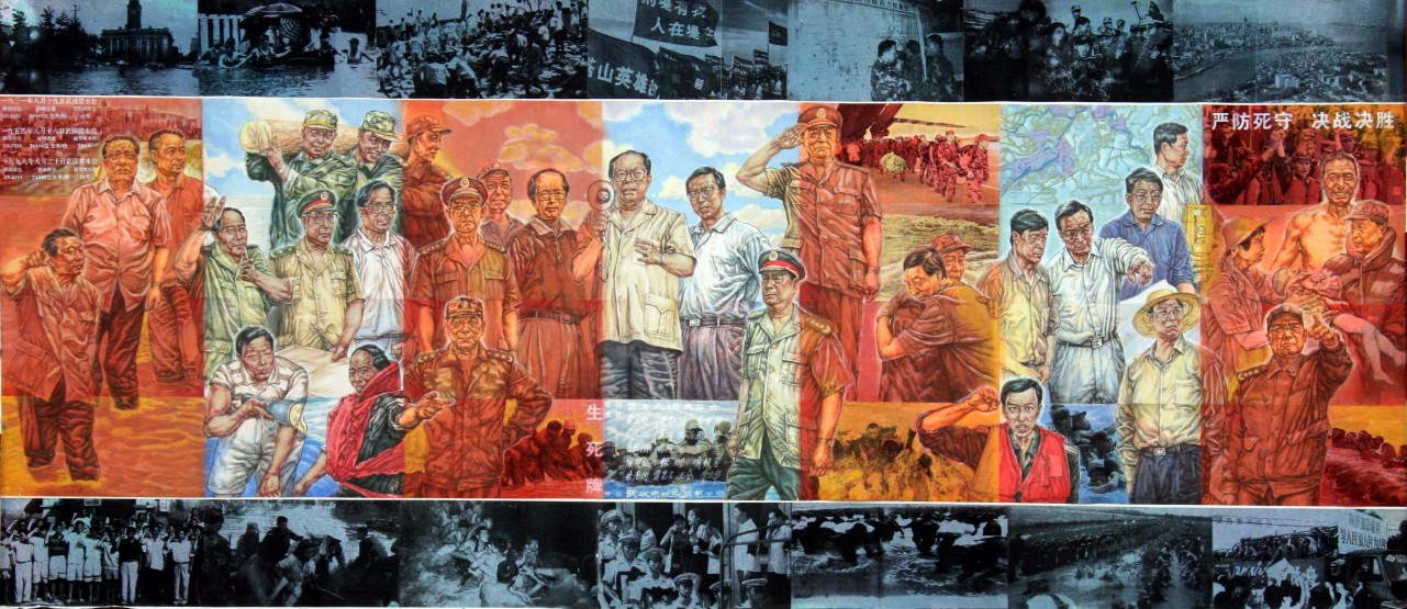 98抗洪 纸本彩墨 238cm×107cm 2003年 选自湖北省纪念建国55周年美展铜奖