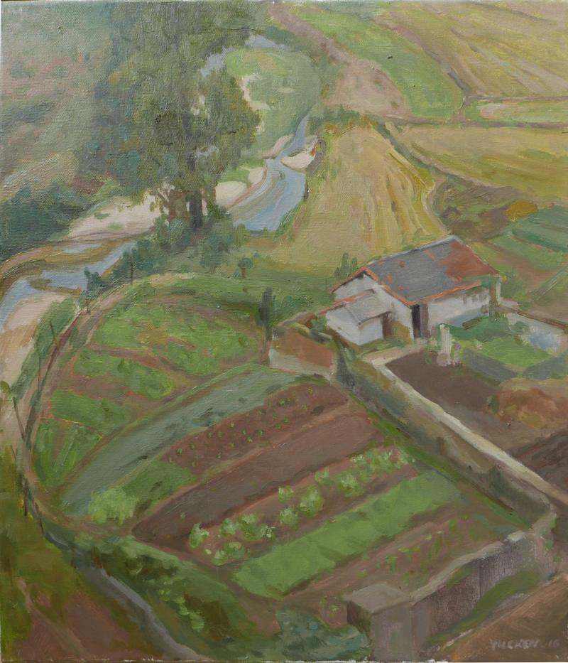 作品《古镇》入选参加学校优秀风景写生汇报展。
