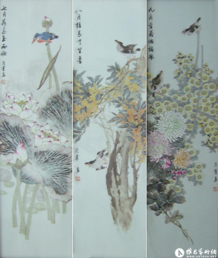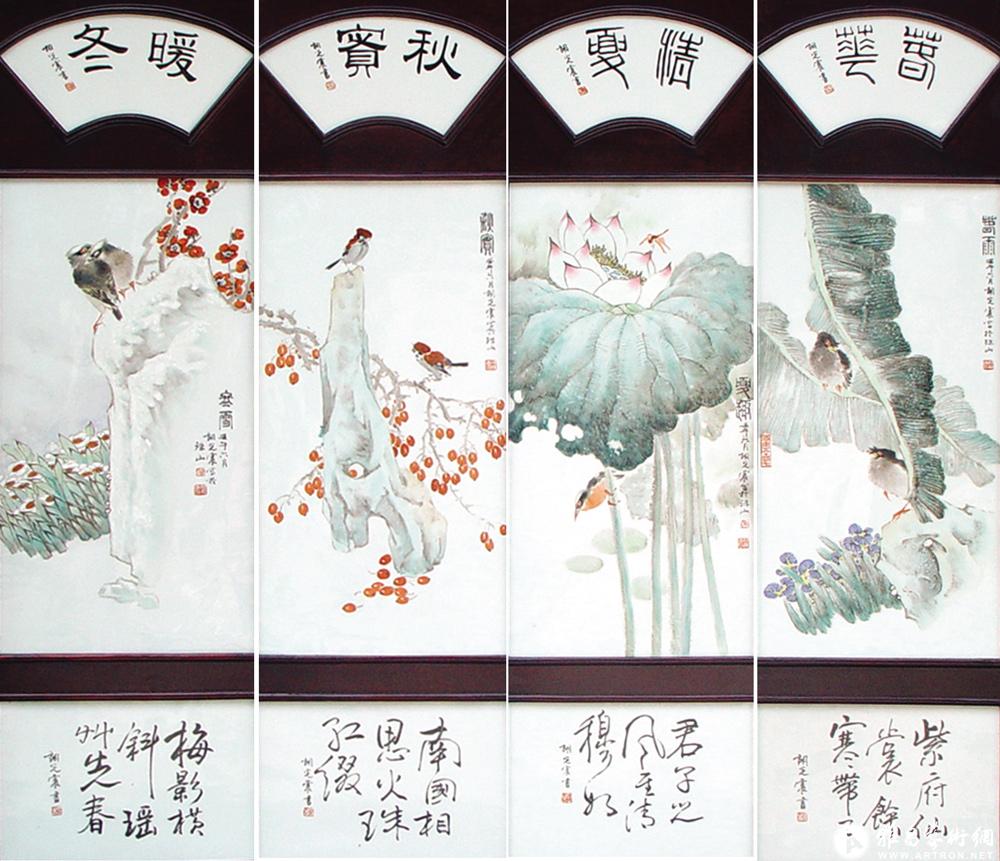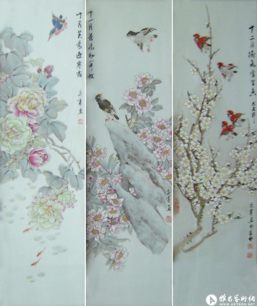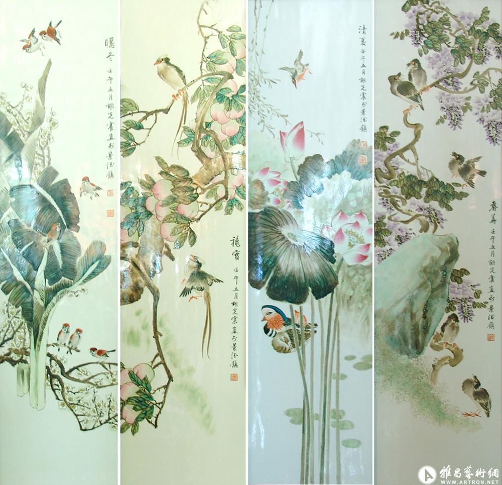 四季花鸟条屏