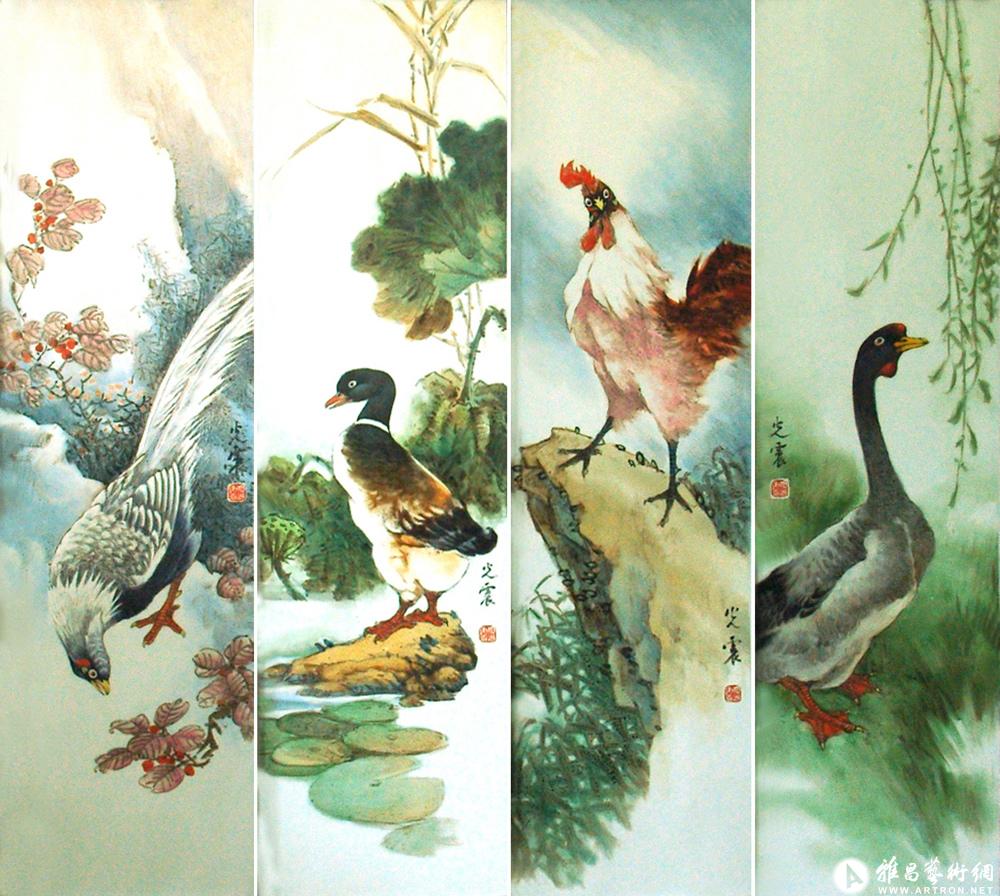 禽鸟四条屏