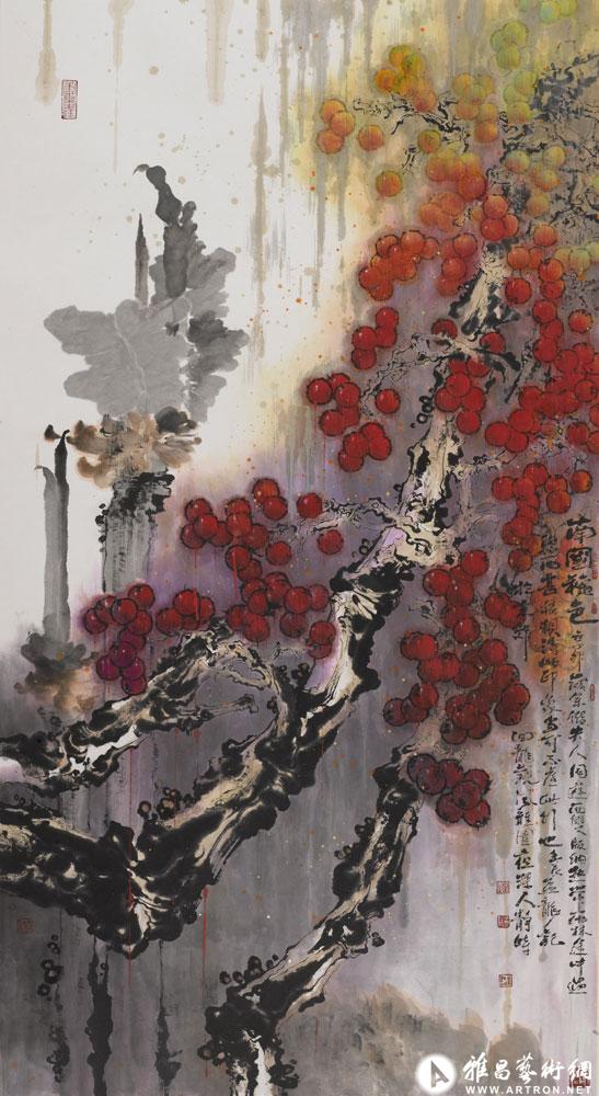 国画《南国金秋》获纪念《在延安文艺座谈会上讲话》发表60周年全国美术作品展优秀作品奖;